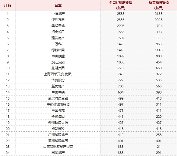 2023年房企新增货值T0P100