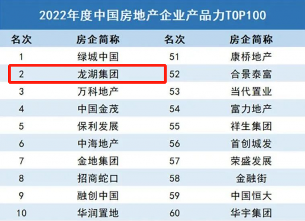 在12月初由权威房产数据机构克而瑞发布的《中国房地产企业产品力TOP100》榜单中,龙湖以强大的产品交付力、广泛的产品接受度、值得信赖的产品系成熟度、广受称赞的产品美誉度,强势占据榜单第2名,再次彰显了龙湖深受广大业主和客户信任的兑现力。