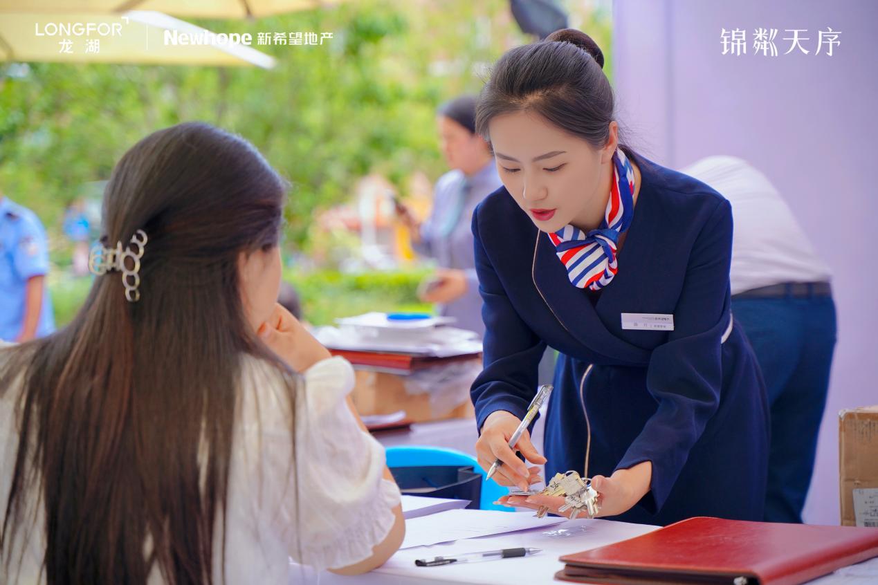 交付现场,各项工作有条不紊地进行,为了方便业主们办好交房手续,每个环节都有工作人员耐心解答疑问,协助办理,全程礼宾式服务,让业主们切身感受到归家的温暖。无数次的想象,终抵不过亲眼所见的美好。整洁的道路、温馨的装饰、灿烂芬芳的花朵,错落有致的树阵,一花一木、一景一筑,妆点业主温馨的回家路,业主们的喜悦之情溢于言表。